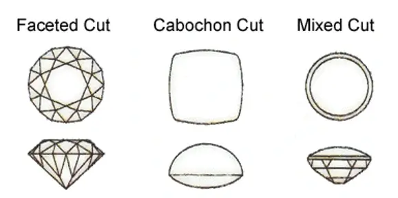 There are facet cuts (round, oval, cushion / antique, emerald, etc.), smooth cuts (cabochon, sugarloaf, etc.) and also mixed cuts (bufftop, rose cut, etc.).‍